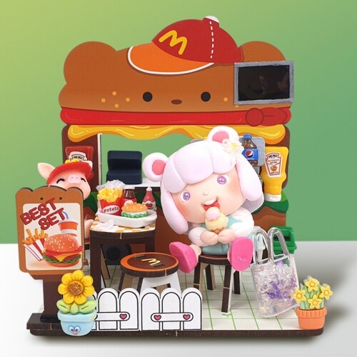 인쇄 우드 DIY 미니어처 곰돌이 햄버거 푸드 트럭 만들기 놀이