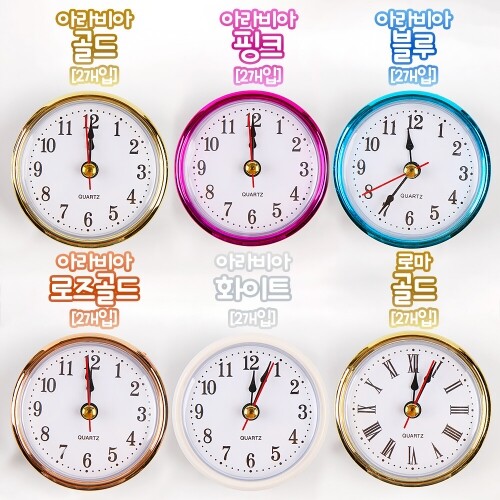 6.5cm 칼라 알시계 로마 아라비아 숫자 2개입