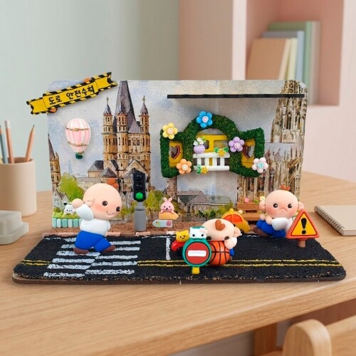 6개입 미니어처 동물 도로 교통 표지판 장식 데코