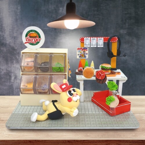 미니어처 우드 배경판 기역자 화덕 피자 가게