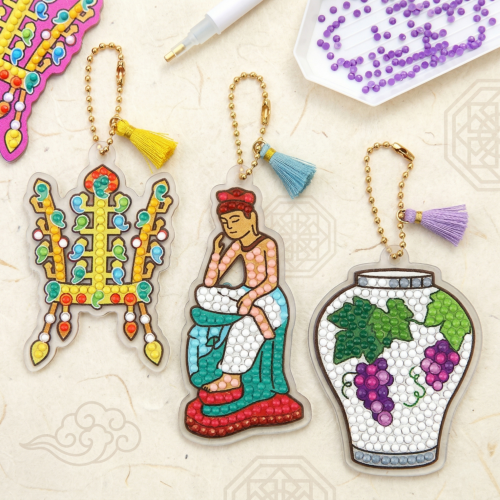 보석십자수 전통 명절 복 행운 놀이 아크릴 키링