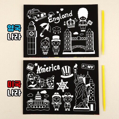 미국 영국 세계 나라 스크래치 페이퍼 컬러링 보드