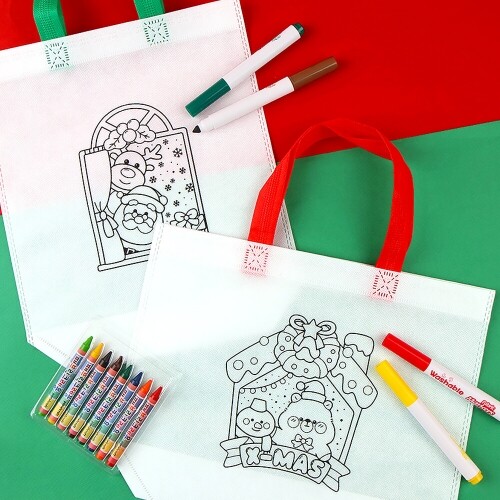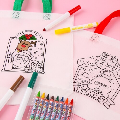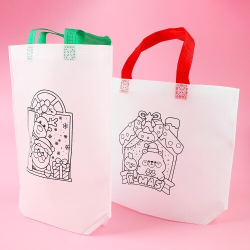 4개입 크리스마스 하우스 색칠 부직포 가방