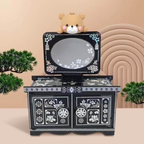 2개입 나전칠기 자개 블랙 휴대용 사각 손잡이 거울 만들기