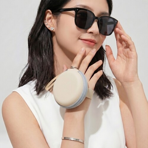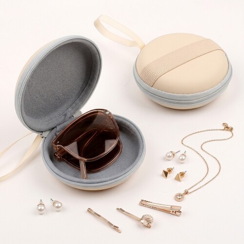 EVA 아이보리 원형 접이식 밴딩 지퍼 파우치 케이스