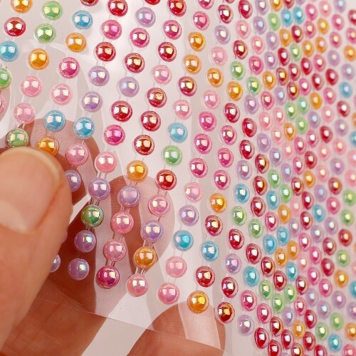 진주 반구 스티커 혼합 오로라 4mm 20x50알