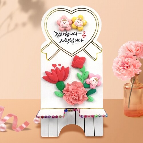 우드 세로형 어버이날 카네이션 하트 핸드폰 거치대