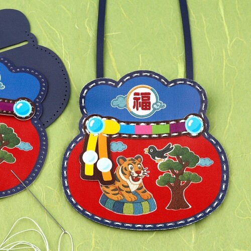 DIY 가죽 호작도 자수 복주머니 크로스백 가방 만들기 1개입