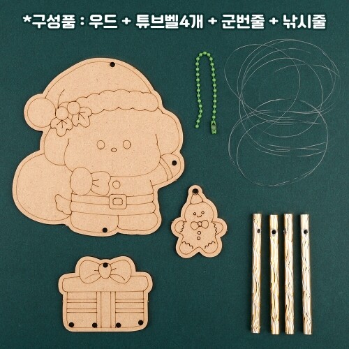 Q-10-230~232 / 3종 택1 / 구성품 : 우드 + 튜브벨 + 군번줄 + 낚시줄 / 눈사람강아지12.3x12.5cm, 루돌프강아지9.8x12.8cm, 산타강아지11.5x12cm