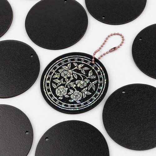 10개입 인쇄 우드 양면 블랙 1구멍 원형 데코판 7cm