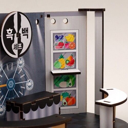 • 인쇄 우드 DIY 미니어처 흑백 셰프 세트장 만들기 상품번호 : 49796